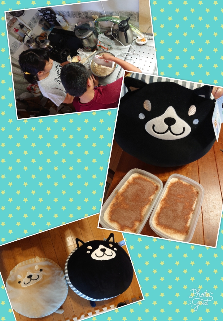 昨日作ったタッパーティラミスと黒柴クッションをプレゼントしてました。