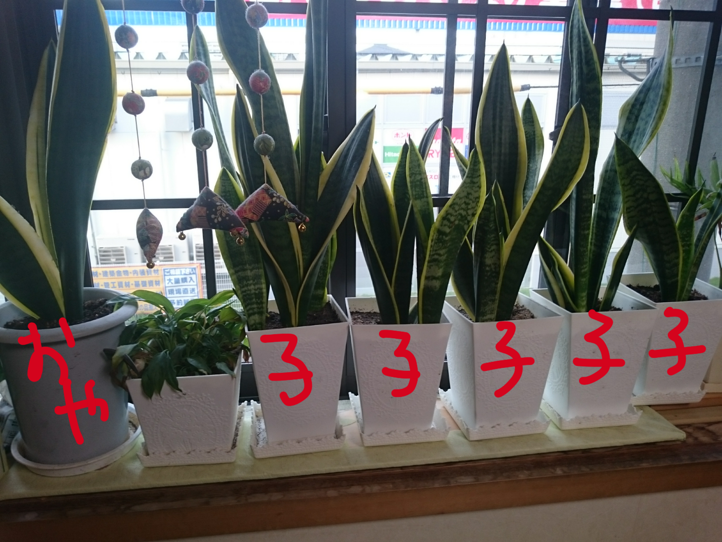 観葉植物のサンスベリアちゃんが占領してます。
