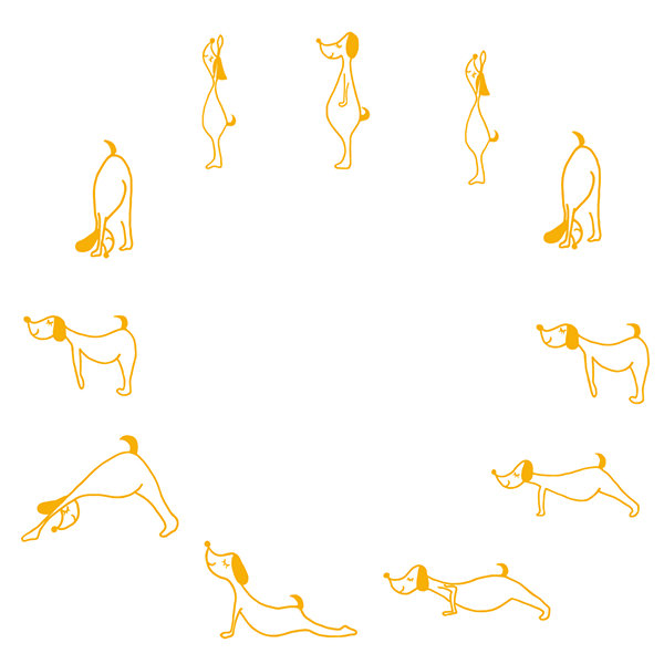 ① タダーサナ(山のポーズ) … 真ん中・時計12時にいてるワンコ