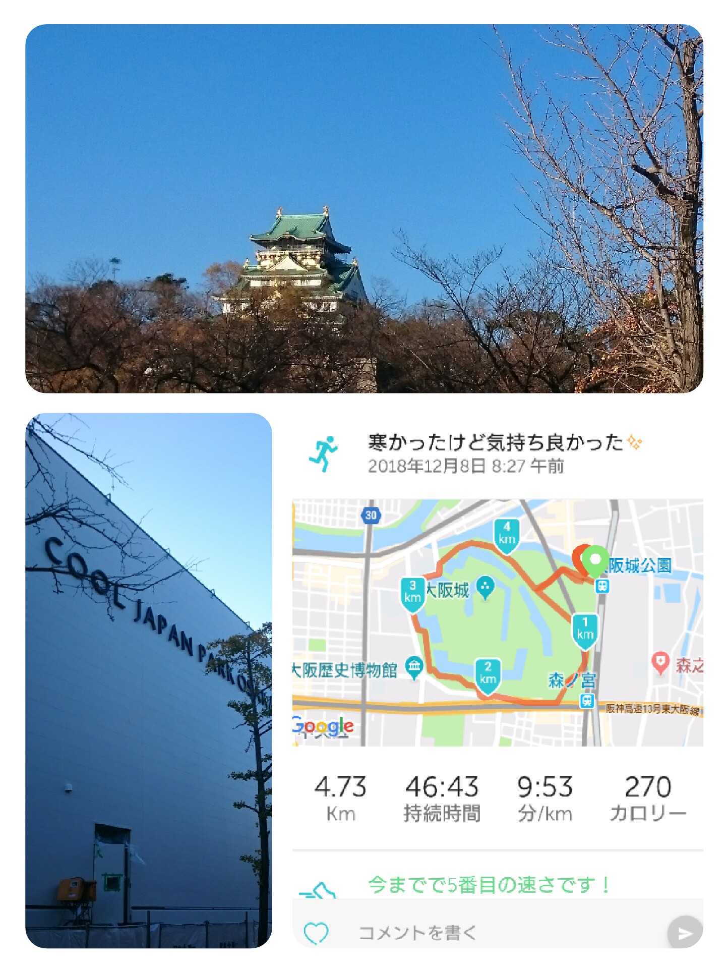 今日は仕事休みだったので、大阪城公園ランに行って来ました。