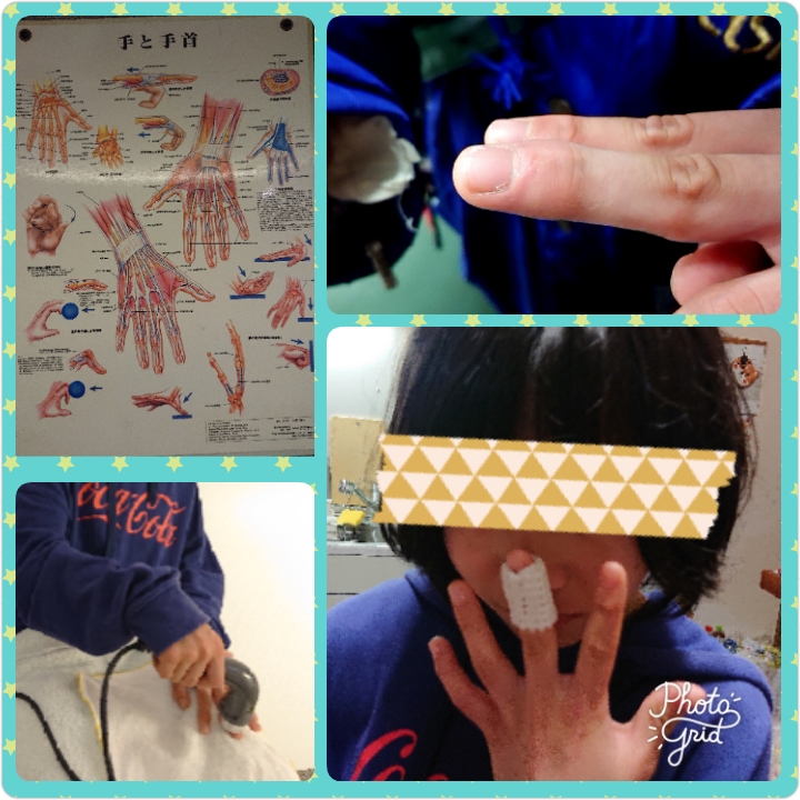 29日の柔道の練習で、左中指を痛めてしまい