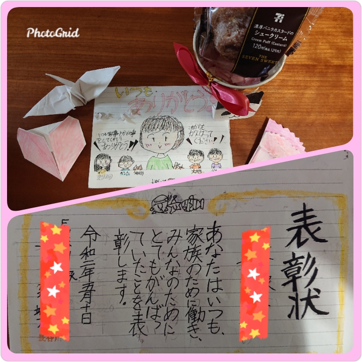 お手紙と表彰状、お嬢からはシュークリームまで(*^_^*)